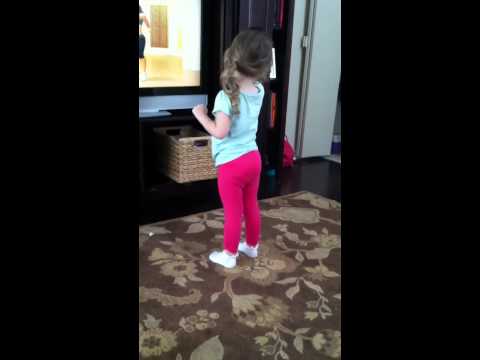 I usually do all my exercising while AC is napping. These days it seems that at least once a week, she just lays in her bed and sings the whole time. Today was one of those days, so after an hour I went to get her. I thought I would give her a snack and she would sit quietly while I finished my "